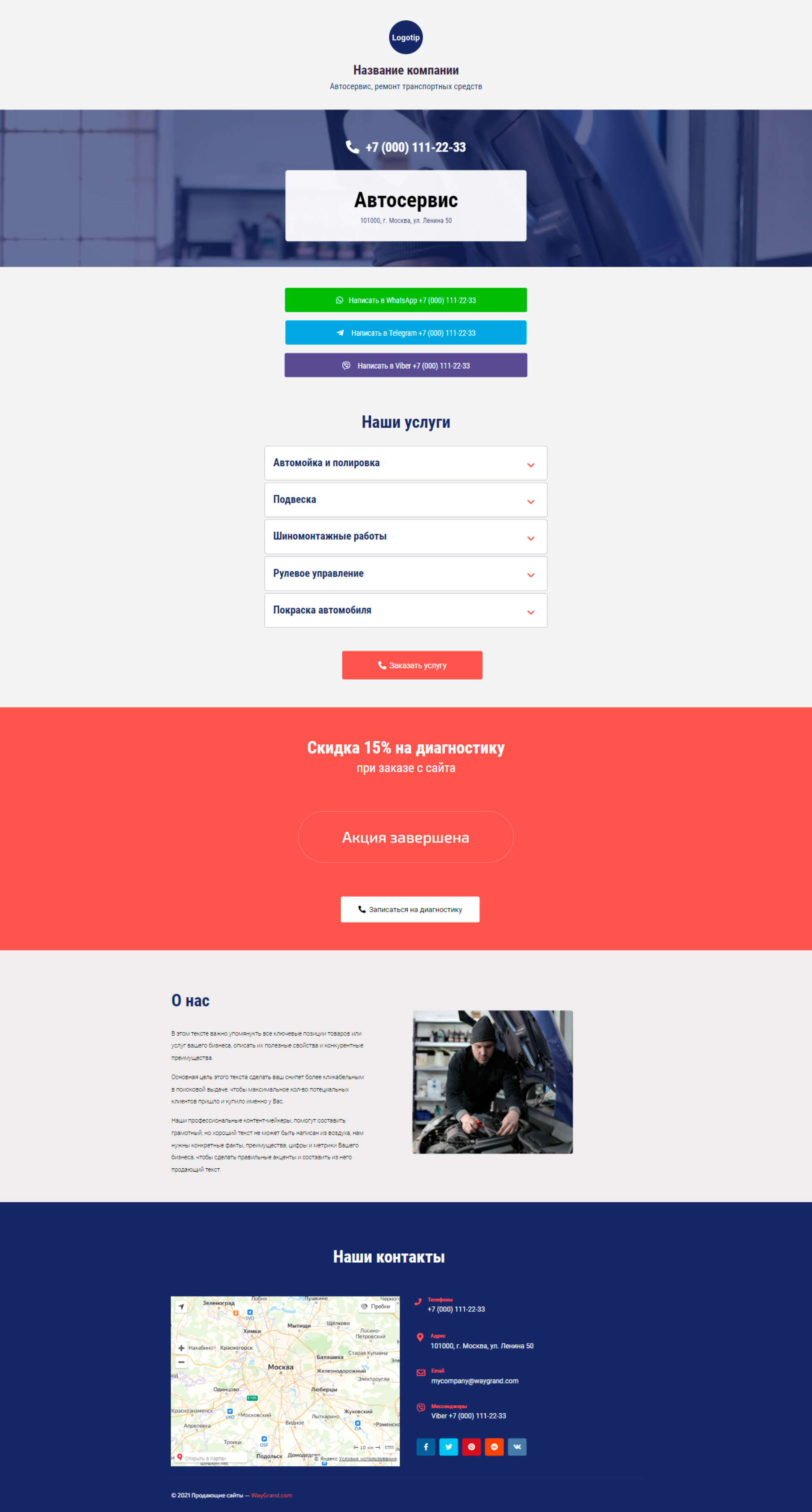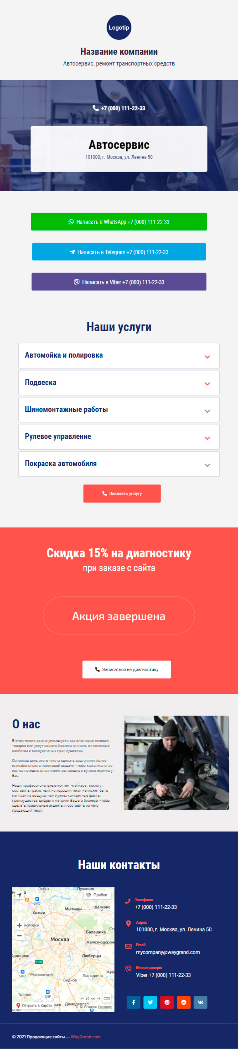 Закажите готовый продающий сайт визитка #0210101 в Златоусте за 5-7 дня «под ключ»: свёрстан, отрисован и готов к рекламе. Тематика шаблона «Автосервис, ремонт транспортных средств».