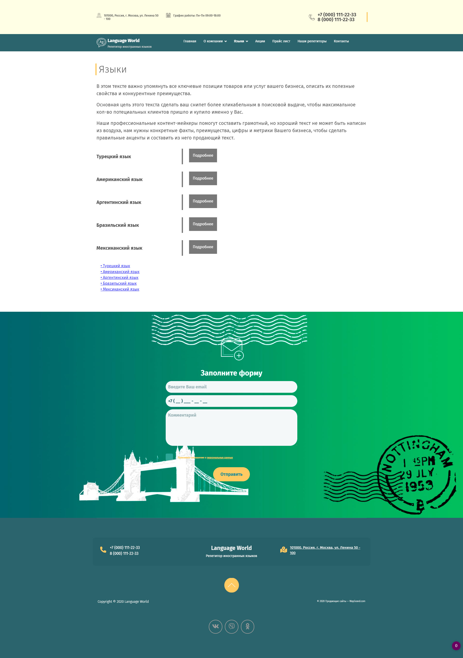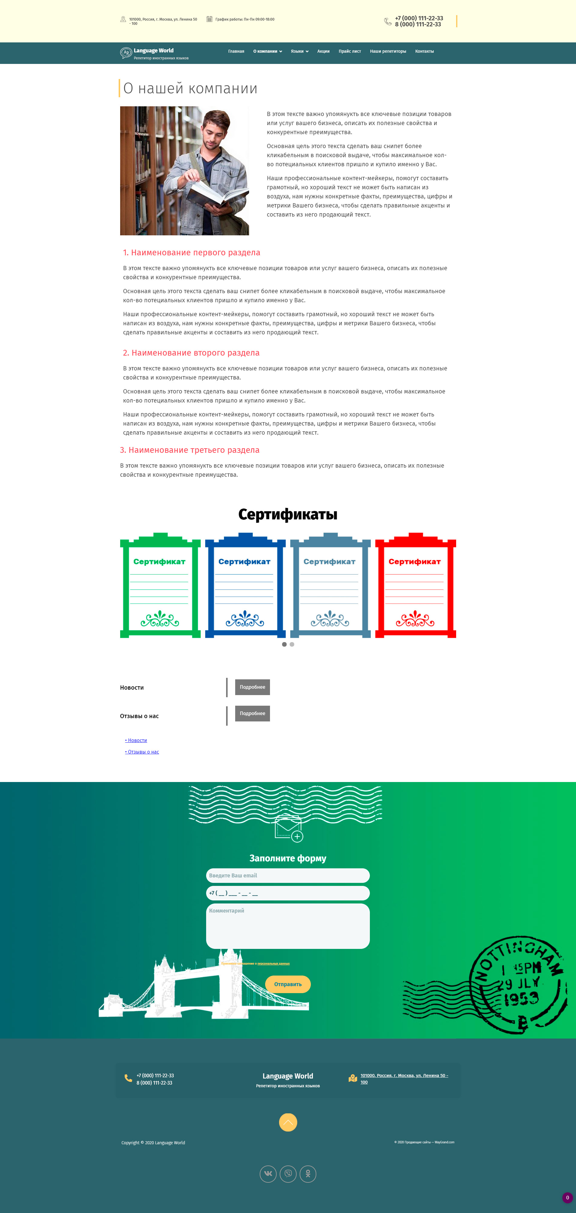 Закажите готовый продающий сайт визитка #1448302 в Златоусте за 5-7 дня «под ключ»: свёрстан, отрисован и готов к рекламе. Тематика шаблона «Репетитор иностранных языков».