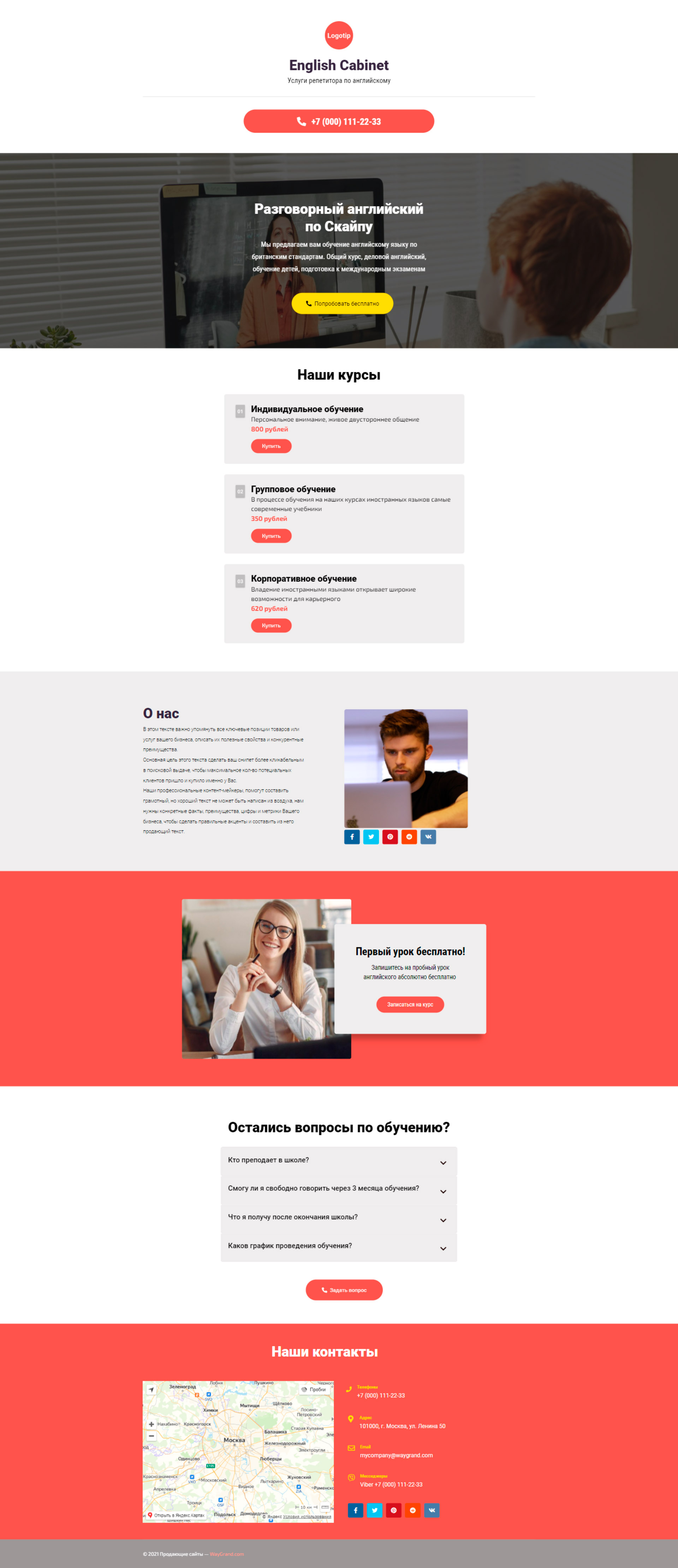 - Блок "Первый урок бесплатно!"