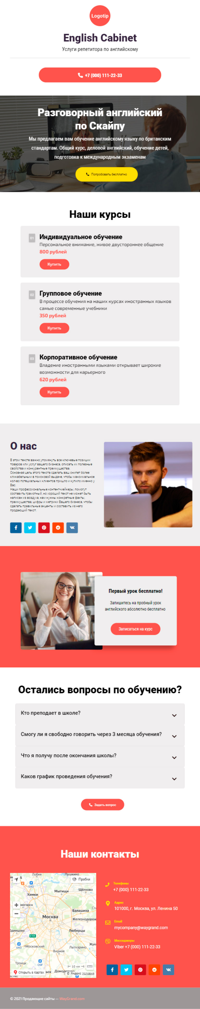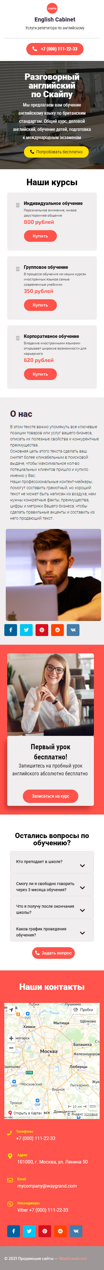 Закажите готовый продающий сайт визитка #1463101 в Златоусте за 5-7 дня «под ключ»: свёрстан, отрисован и готов к рекламе. Тематика шаблона «Услуги репетитора по английскому».