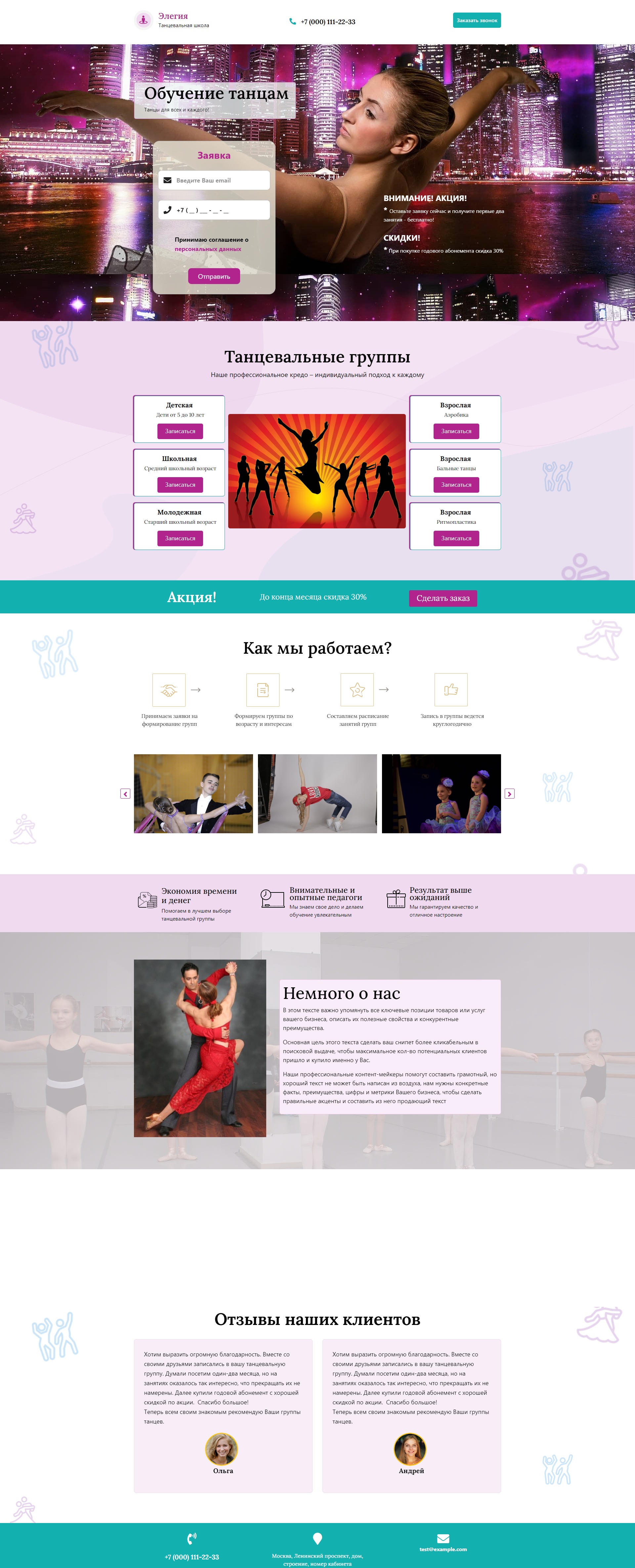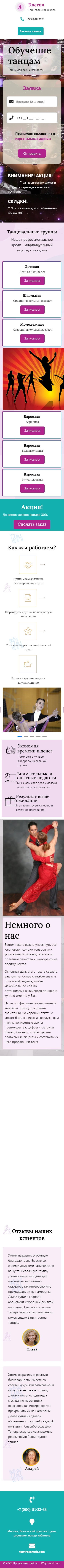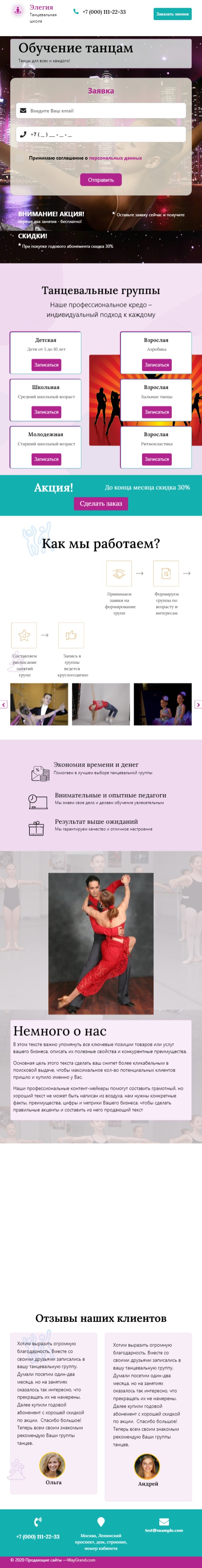 Закажите готовый продающий сайт лендинг #1923201 в Златоусте за 1-3 дня «под ключ»: свёрстан, отрисован и готов к рекламе. Тематика шаблона «Обучение танцам».